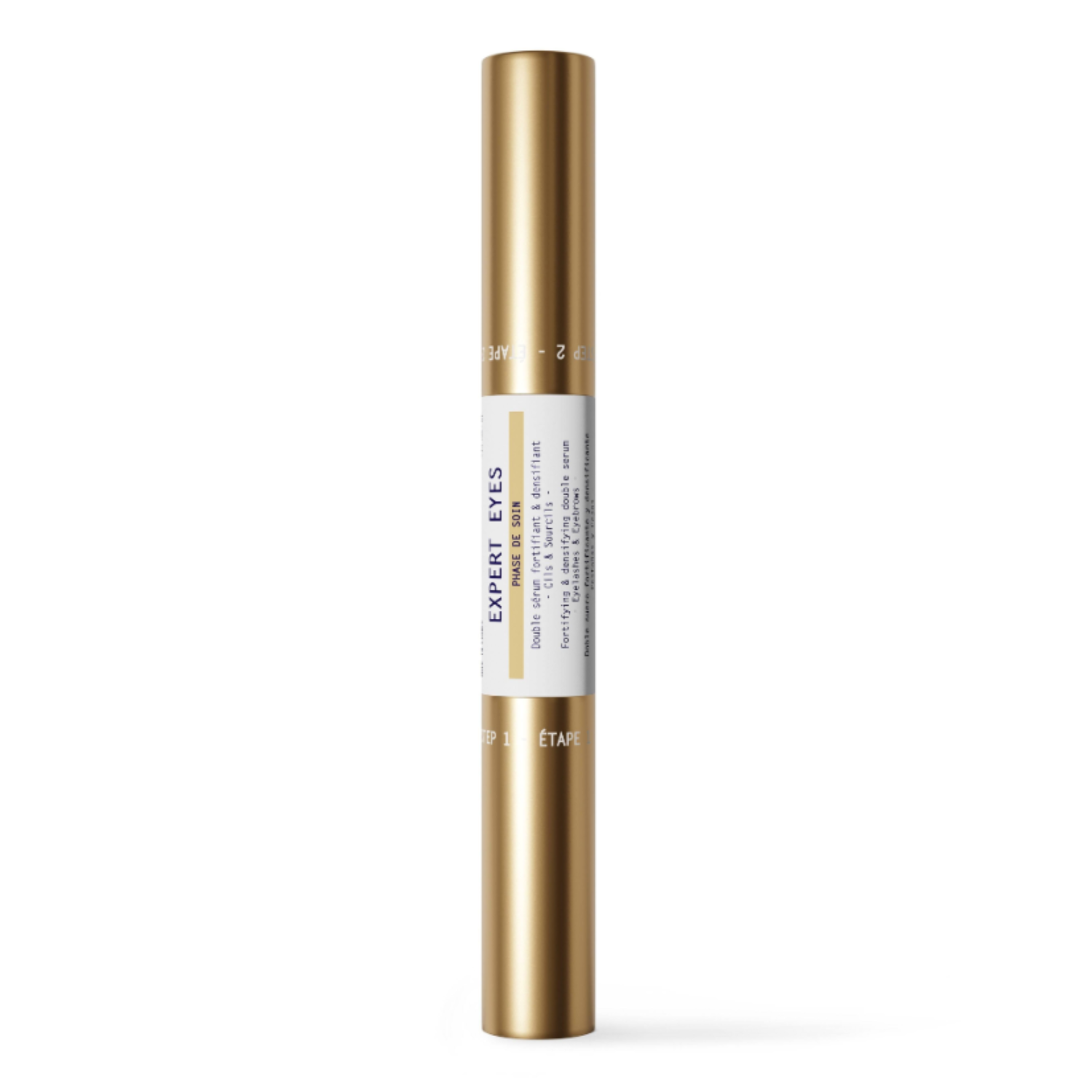 Expert Eyes provides a complete solution to the lack of density and length in eyelashes and eyebrows. With its fortifying, densifying and growth-stimulating actions, this double serum delivers visible results on eyelash length after 14 days, and on eyebrow density after 28 days of twice-daily use.